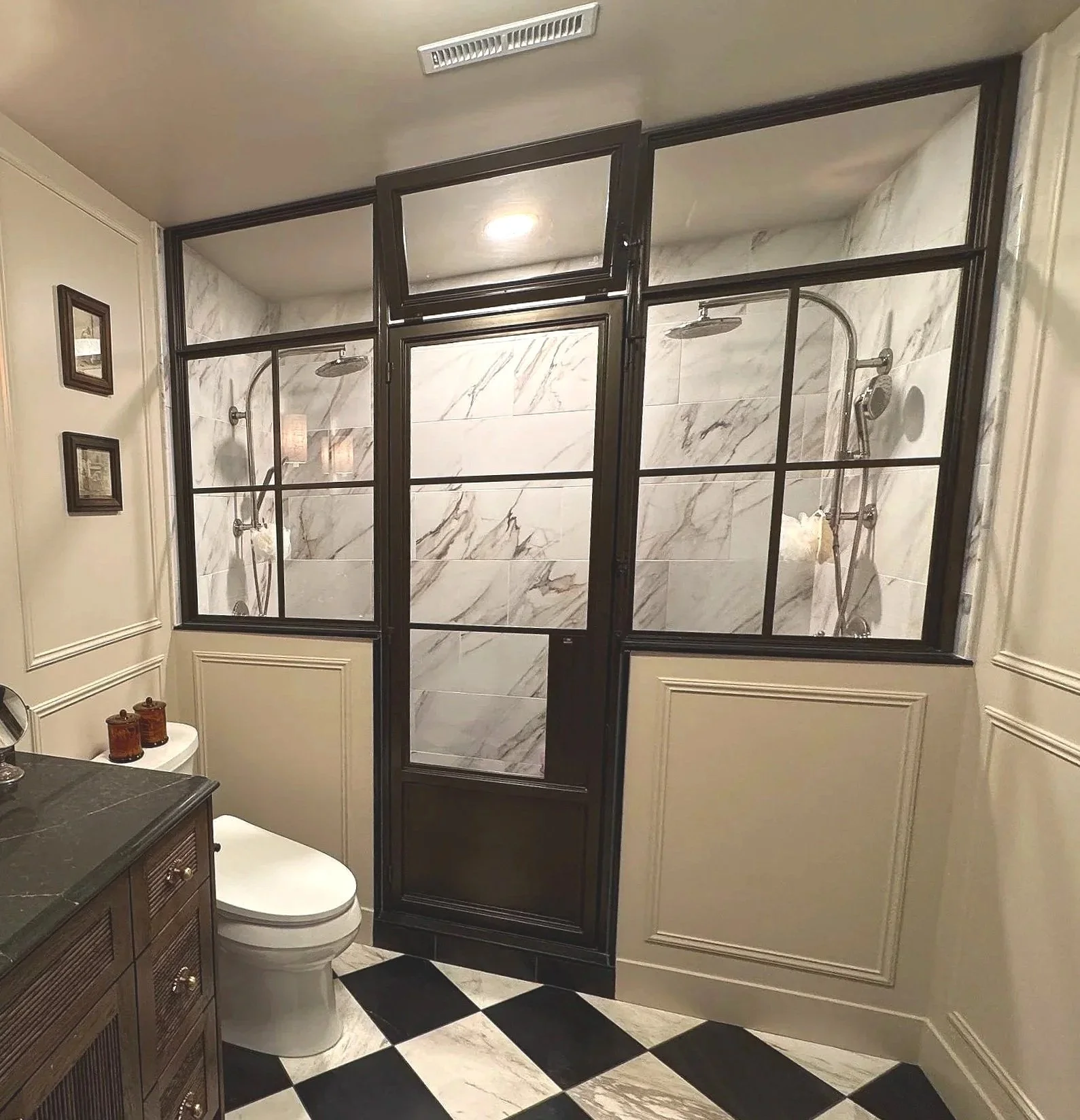 POWDER-COATED STEEL SHOWER ENCLOSURE DESIGNED BY ASHTON DESIGN STUDIO